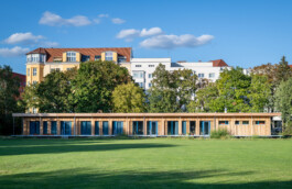 Das Pilotprojekt Fliegendes Klassenzimmer hat die Berliner Senatsverwaltung für Stadtentwicklung und Wohnen im Jahr 2018 im Rahmen der Berliner Schulbauoffensive auf den Weg gebracht. Ausgangspunkt für die Entwicklung eines prototypischen Holzmodulbaus war die vermehrte Unterbringung von Schüler:innen und Lehrer:innen in Stahlcontainern, die aufgrund mangelnder Schulplätze in Berlin temporär aufgestellt werden. Das Fliegende Klassenzimmer, das die Architekt:innen des Baumanagements des Bezirksamt Tempelhof-Schöneberg zusammen mit der Holzbaufirma Blumer Lehmann AG geplant und umgesetzt haben, wurde 2018 nach rund einem Jahr Planungs- und Bauzeit fertiggestellt. Als erste Version des Prototypen dient der temporäre Holzmodulbau der Grundschule auf dem Tempelhofer Feld und der Paul-Klee Grundschule als Standort.