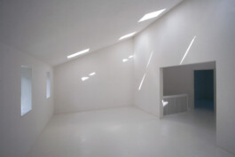 Für eine Familie plante das Berliner Büro brandt + simon architekten ein kleines Gebäude entlang einer Brandwand im Bezirk Berlin-Pankow mit umgebendem Gartengrundstück. Auf rund 215 Quadratmetern Bruttogrundfläche stapeln sich die drei Geschosse des Einfamilienhauses, das auf einer nur 50 Quadratmeter großen Grundfläche errichtet wurde, um Platz auf dem 850 Quadratmeter großen Grundstück einsparen zu können und trotzdem ausreichend Platz für die dreiköpfige Familie bietet. Zusätzlich ist so eine weitere, spätere Bebauung des Grundstücks nicht ausgeschlossen. Das 2009 fertiggestellte kleine Wohnhaus zeichnet sich besonders durch seine auffällige Fassadengestaltung mit glasierten Biberschwanzziegeln in verschiedenen Grüntönen aus, doch hinter der spielerischen Außenhaut verbirgt sich eine nicht minder spannende Konstruktion: Auf einem konventionellen Betonfundament ist das Gebäude als Holztafelbau mit aufgedoppelten, 18 Zentimeter dicken Außenwänden konstruiert. Das Material für die Konstruktion wurde auf die Baustelle geliefert, vor Ort wurden die Wandtafeln liegend gefertigt, aufgerichet und für eine ökologische Dämmung mit Zellulose aufgeblasen. Die Bauzeit konnte so auf ein knappes halbes Jahr reduziert werden. Die Biberschwanzziegeln bieten über ihr gestalterisches Potenzial hinaus auch einen konstruktiven Mehrwert: Sie sind flexibel genug, um die leichte Bewegung des Holzständerbaus aufzunehmen und bieten auch dauerhaften Schutz vor Witterung. Als gestalterisches Hauptelement zieht sich die Ziegelüberdeckung des Steil- und Flachdaches entlang aller Außenwände bis zur unteren Gebäudekante. Die Grüntöne des Gartens und der Fassade werden im Innenraum gänzlich abgelöst von minimalistisch weiß geputzten Wänden, weißen Holztreppen und einem dunklen Parkettboden. Die großzügig geschnittenen Räume auf drei Etagen werden durch viele Fenster mit verschiedenen Formaten und mit tiefen Leibungen belichtet.